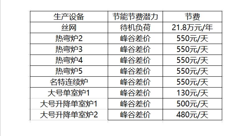 热弯炉4——将负荷调整到夜间21点到第二天早上7点之间生产,每天可节约550元,每年将可节约电费20万元。