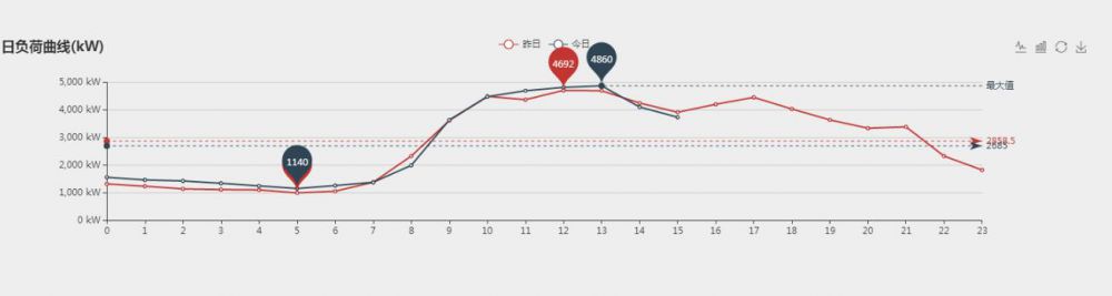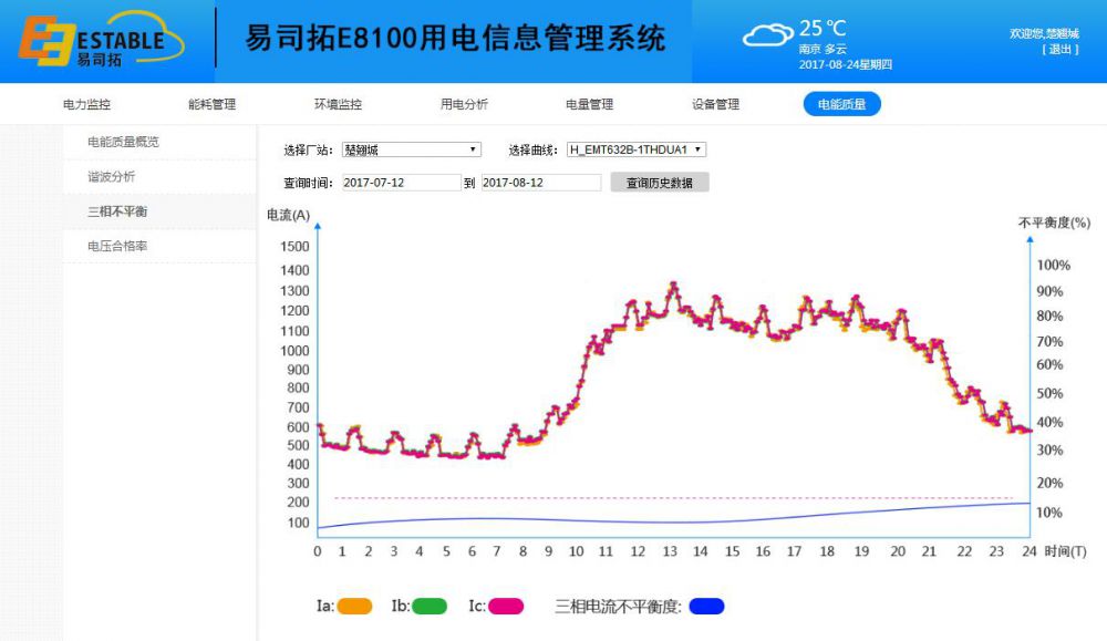 用电服务平台对电压质量、三相不平衡、各分支回路的负载进行实时监控,对谐波比较敏感的回路配置电能质量分析仪进行监控,一旦指标超出合理范围,系统自动通知运维人员。及时发现,避免造成对变电器的损坏。