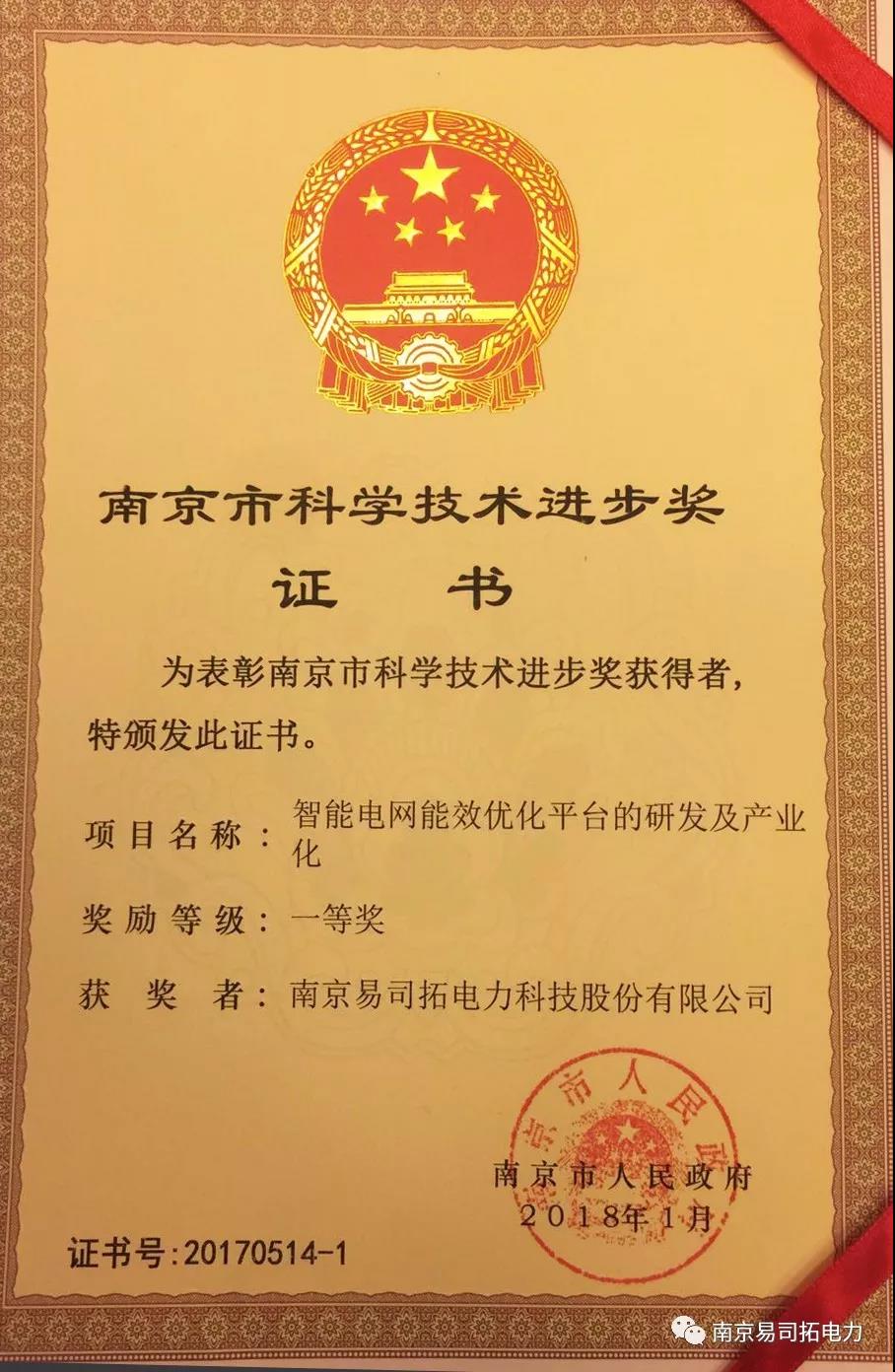 会上,市政府副市长蒋跃建宣读了《市政府关于2017年度南京市科学技术奖励的决定》,授予97项成果2017年度南京市科学技术进步奖,其中一等奖8项,二等奖27项,三等奖62项;江苏省委常委、南京市委书记张敬华,南京市委副书记、市长缪瑞林,南京大学校长陈骏,东南大学校长张广军等领导为南京市科技进步奖单位授奖。南京易司拓智能电网能效优化平台的研发及产业化项目表现突出,喜获南京市科技进步一等奖。