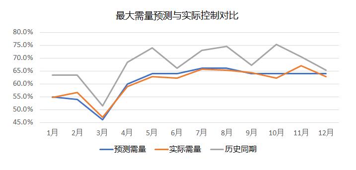 1.月度最大需量预测误差小于5%,不超过申报额的3%,完全满足实际最大需量不超过5%申报额规定要求。
