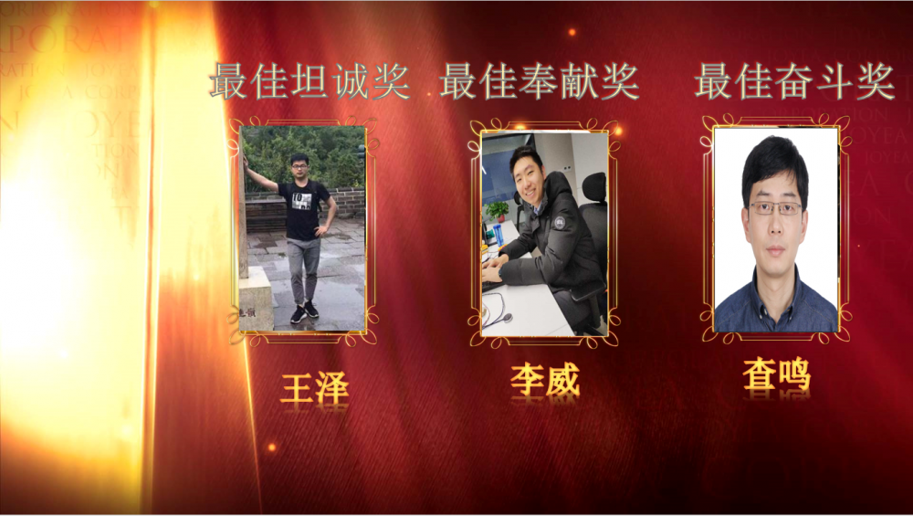 最佳坦诚奖:王泽、最佳奉献奖:李威、最佳奋斗奖:查鸣