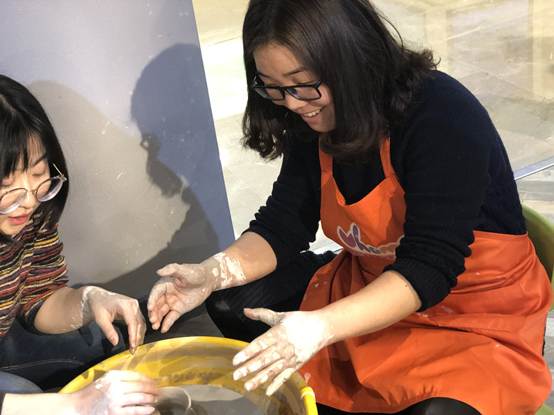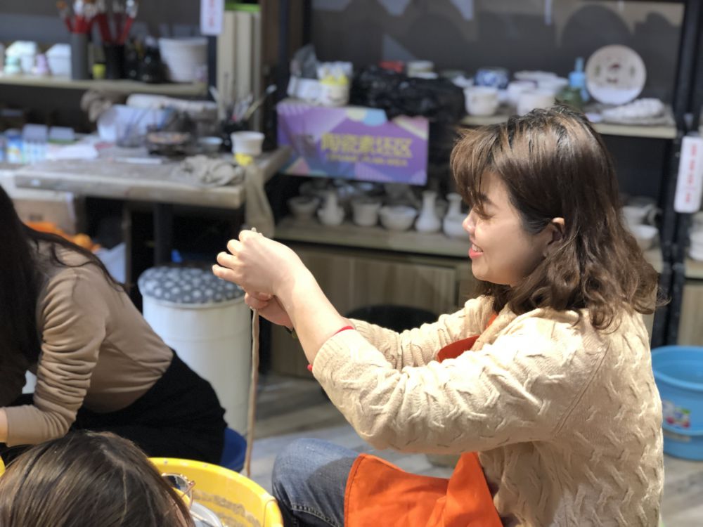 一抔陶泥,从泥到器,从无形到有形,经过烈火千锤百炼的锻造从柔性变得刚硬,正如女性,柔软亦有刚强的一面,却也美的各有风采。每个人都在专注着自己的作品,细心揉捏。此刻的她们远离生活的浮躁,静静的享受那一份安宁。